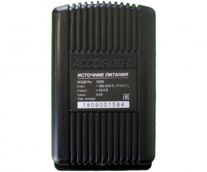 AccordTec AT-12/50 - универсальный источник стабилизированного питания с выходным напряжением в 12,6В и номинальным током нагрузки в 5,0 А, предназначен для CCTV или систем контроля доступа. Обладает простой системой линейной фильтрации, что дает возможность активно использовать его в системах видео наблюдения.