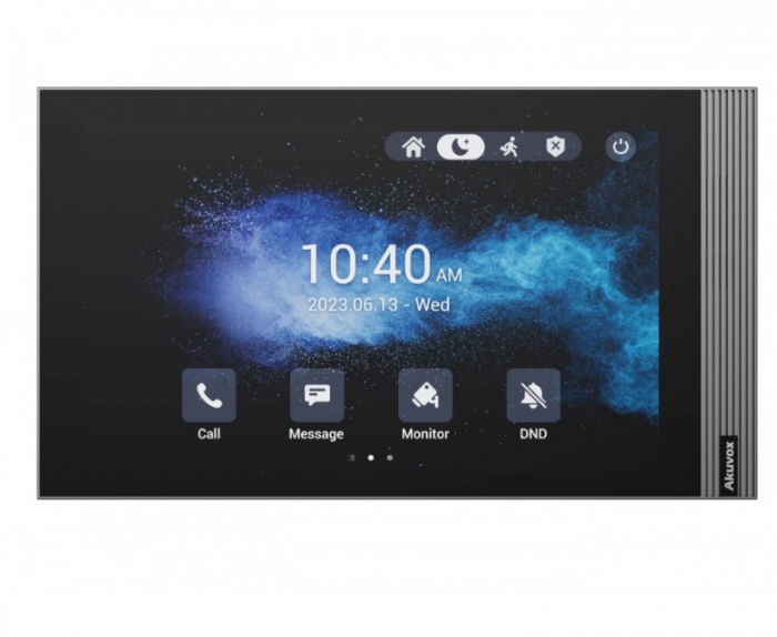 Akuvox S563 - это 8-дюймовый монитор для помещений, работающий под управлением операционной системы Android 12. Он оснащен исключительным динамиком и сенсорным дисплеем с высоким разрешением, что обеспечивает непревзойденное аудиовизуальное качество внутренней связи. Его стильный и компактный дизайн органично вписывается в современные дома.