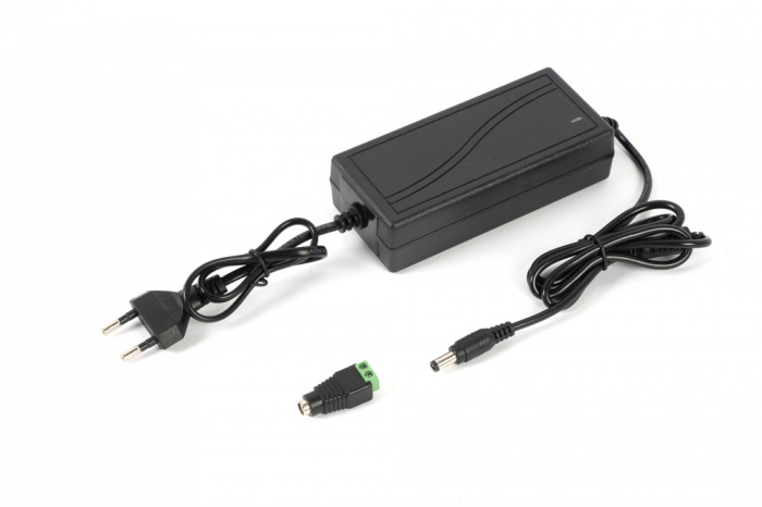 12В, 3А. Напряжение питающей сети 110-245 В переменного тока. Защита выхода от КЗ. Пластиковый корпус IP20. Подключение питания - сетевая вилка, подключение нагрузки - штекер 5,5х2,1 мм, переходник на клеммы в комплекте. Габаритные размеры - 50х30х110 мм.