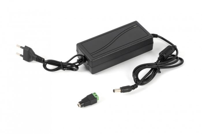 12В, 4А. Напряжение питающей сети 110-245 В переменного тока. Защита выхода от КЗ. Пластиковый корпус IP20. Подключение питания - сетевая вилка, подключение нагрузки - штекер 5,5х2,1 мм, переходник на клеммы в комплекте. Габаритные размеры - 50х30х110 мм.