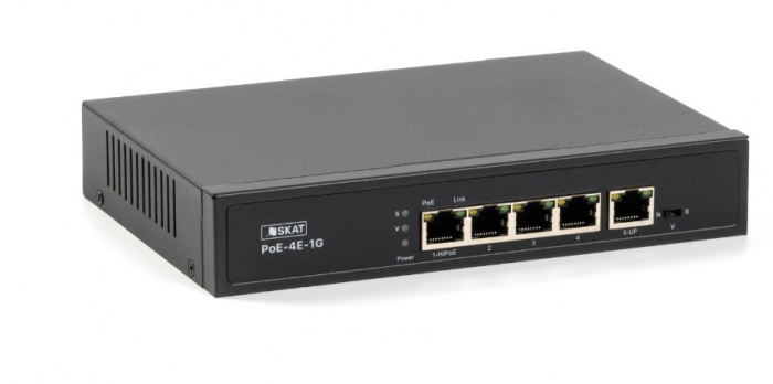 SKAT PoE-4E-1G представляет собой специализированный неуправляемый PoE коммутатор для использования в системах видеонаблюдения и безопасности. Характеризуется высокой надежностью работы благодаря защите от электростатических разрядов и перепадов напряжения, позволяет организовать качественную передачу информации в сети Ethernet.