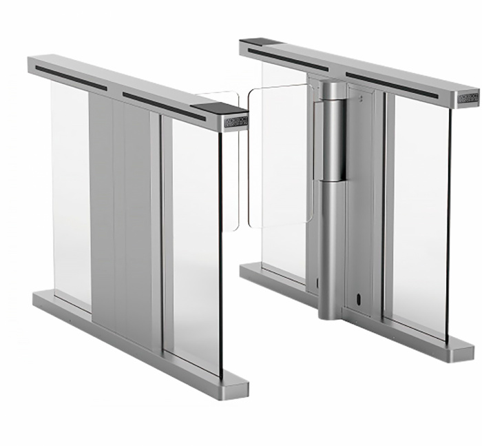 Распашные турникеты предназначены для организации проходных с повышенными требованиями к дизайну и комфортабельности прохода. РСП 900 достаточно компактная модель с высокой проходимостью, которая подойдет для применения в интенсивных условиях эксплуатации. Турникет РСП 900 – это преграждающая конструкция, имеющая створки, которые закреплены на вертикальных валиках и могут распахиваться как в одну сторону, так и в другую. Распашной турникет оборудован функцией «Антипаника». Эта функция автоматически освобождает проход в экстренных случаях или при сбое электропитания, также она может быть активирована с пульта ДУ.