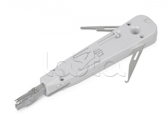 Инструмент предназначен для заделки проводников в контакты плинтов типа Krone (LSA-Plus), а также подходит для контактов Dual IDC (110/Krone) на патч-панелях, без применения пайки, винтового соединения или необходимости снятия изоляции. Монтажный инструмент обеспечивает газонепроницаемый контакт, пригоден для подключения жил диаметром 0,35...0,9 мм и диаметром по изоляции 0,65...2,6 мм. При подключении второй жилы к контакту, сенсорное устройство можно отключить. Ножницы могут быть отключены для обеспечения возможности подключения жилы к соседнему контакту (шлейф, петля). Усредненная износостойкость для диаметра жилы 0,4 мм - 200 000 подключений.