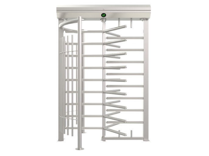 Автоматический моторизованный полноростовый турникет с корпусом из оцинкованной окрашенной стали. Ротор и планки из нержавеющей стали AISI 304. Три сектора по 120 градусов. Встроенный блок управления. Индикатор направления движения. Освещение зоны прохода. Встроенный блок питания.