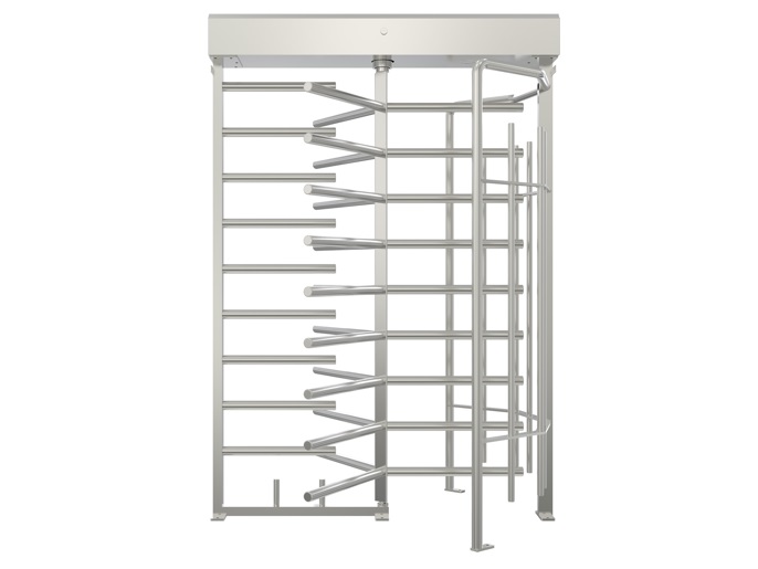 Автоматический моторизованный полноростовый турникет с корпусом, ротором и преградами из оцинкованной окрашенной стали. Три сектора по 120 градусов. Встроенный блок управления. Освещение зоны прохода. Встроенный блок питания.
