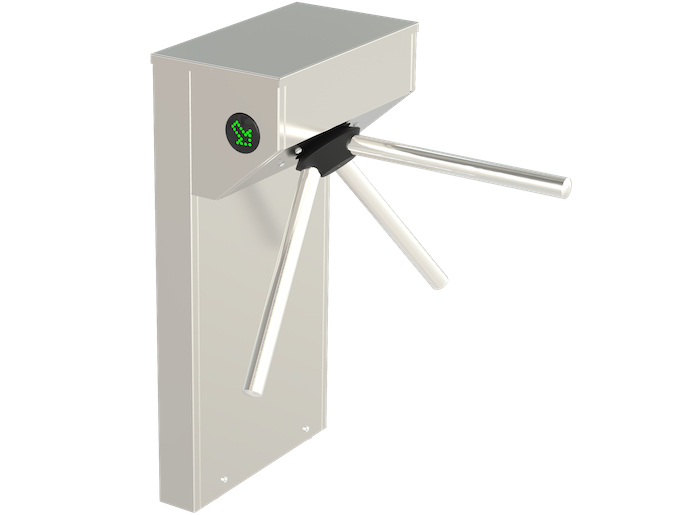 Турникет-трипод моторизованный. Корпус и преграды из нержавеющей стали AISI 304. Оснащен платой управления и светодиодными указателями прохода. Стержни-барьеры с электродоводкой, автоматической системой антипаники и автоматическим поднятием штанг. Встроенный блок питания.