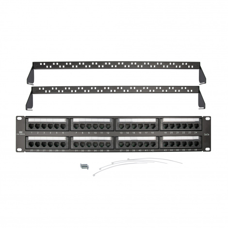 Панель коммутационная кат.5е, UTP, 19", 2U, 48хRJ45, 568A/В, черный с организат. (DR-4021) Datarex