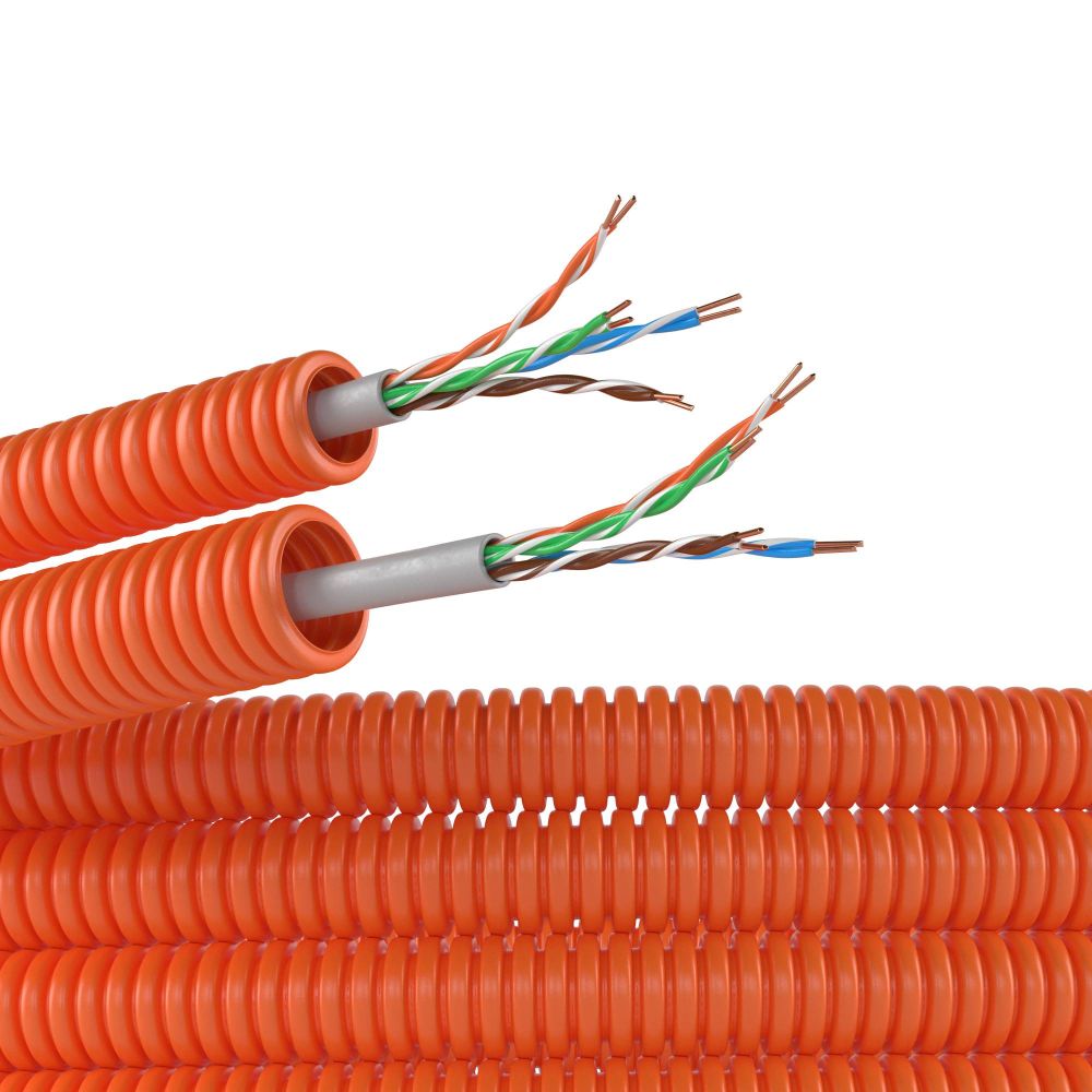 Электротруба ПНД гибкая гофрированная д. 16 мм, цвет оранжевый, с кабелем витая пара 5EU/UTP нг(А)-HF, 50 м подробнее