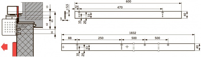 G-SR/V/BG (серый) координатор последовательности закрывания створок в комплекте со скользящими каналами для установки со стороны, противоположной петлям. Ширина проема 1500 - 2500 мм