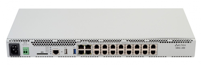 Офисная IP АТС SMG-200 рассчитана на 100 SIP-абонентов в базовой конфигурации с возможностью расширения до 200 абонентов при приобретении соответствующего ПО1. 16 портов RJ-11 могут использоваться для подключения аналоговых телефонов и городских линий АТС. Порты LAN предназначены для подключения к сетям операторов связи с помощью SIP-транков, а также для подключения VoIP-шлюзов (например, TAU-24 с поддержкой 24 FXS портов) для увеличения числа FXS/FXO портов. Записи разговоров и CDR-файлы хранятся на SD-карте либо USB-накопителе. Также предусмотрена возможность автоматической выгрузки файлов на FTP-сервер.