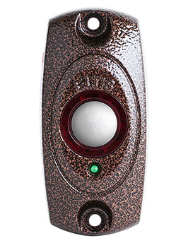 Накладое исполнение, индикация питания, подсветка кнопки. Окраска - серебр. металлик.