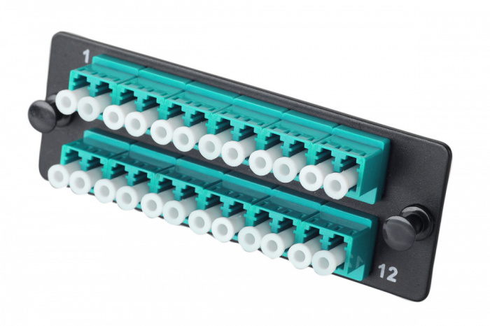 Комплект планка Q-SLOT с 12 адаптерами дуплекс LC OM3, монтажные шнуры, КДЗС Eurolan (38M-30-2L-12BL)