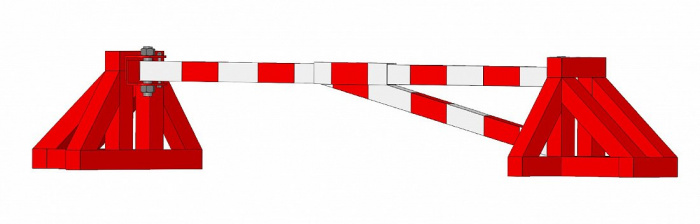 Противотаранный ручной шлагбаум, в комплекте: Опоры с поворотным шарниром и запирающим узлом, Стрела в виде балки с подкосом... подробнее