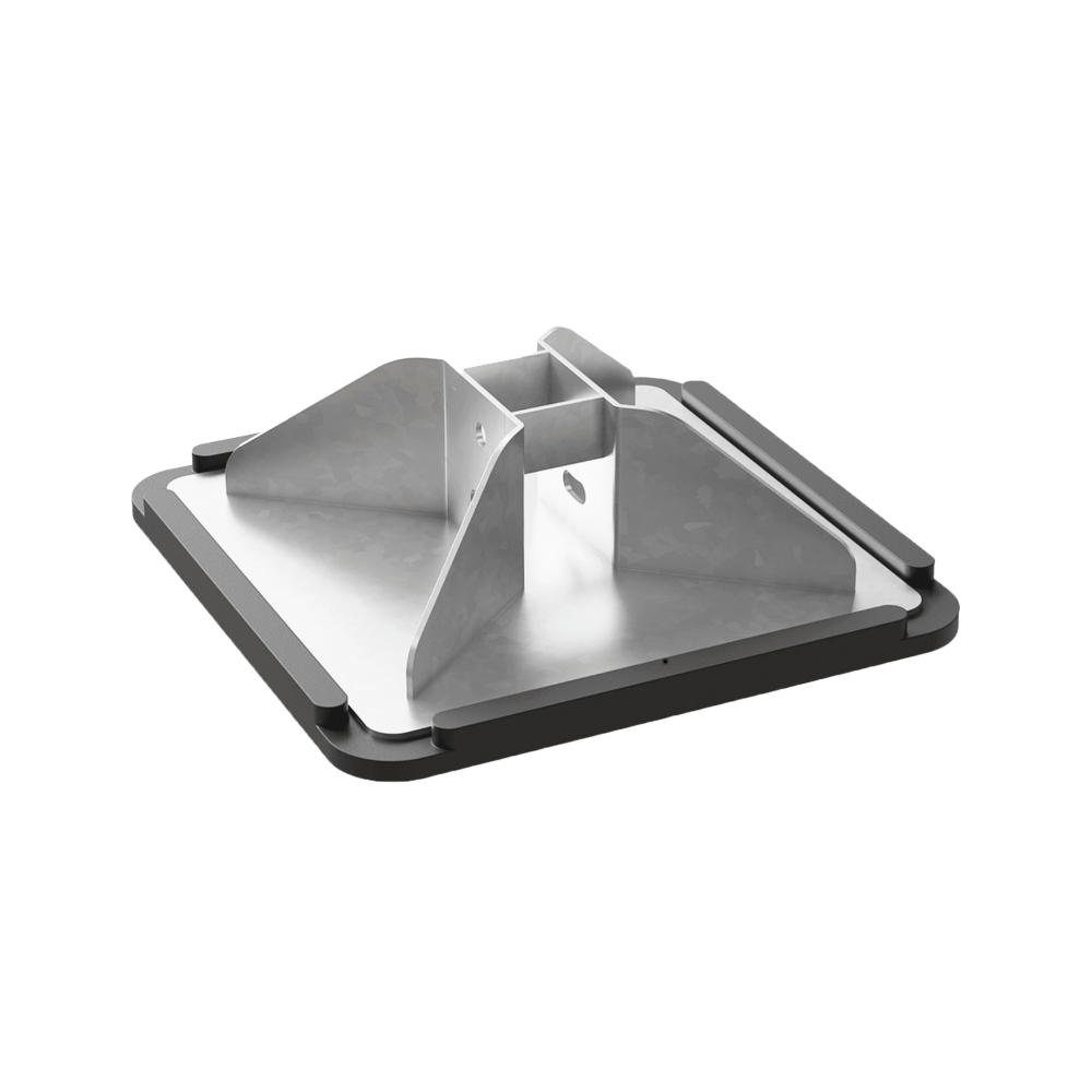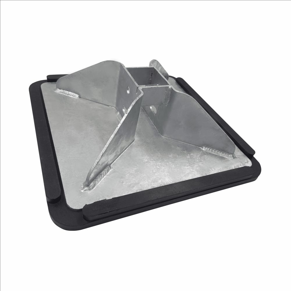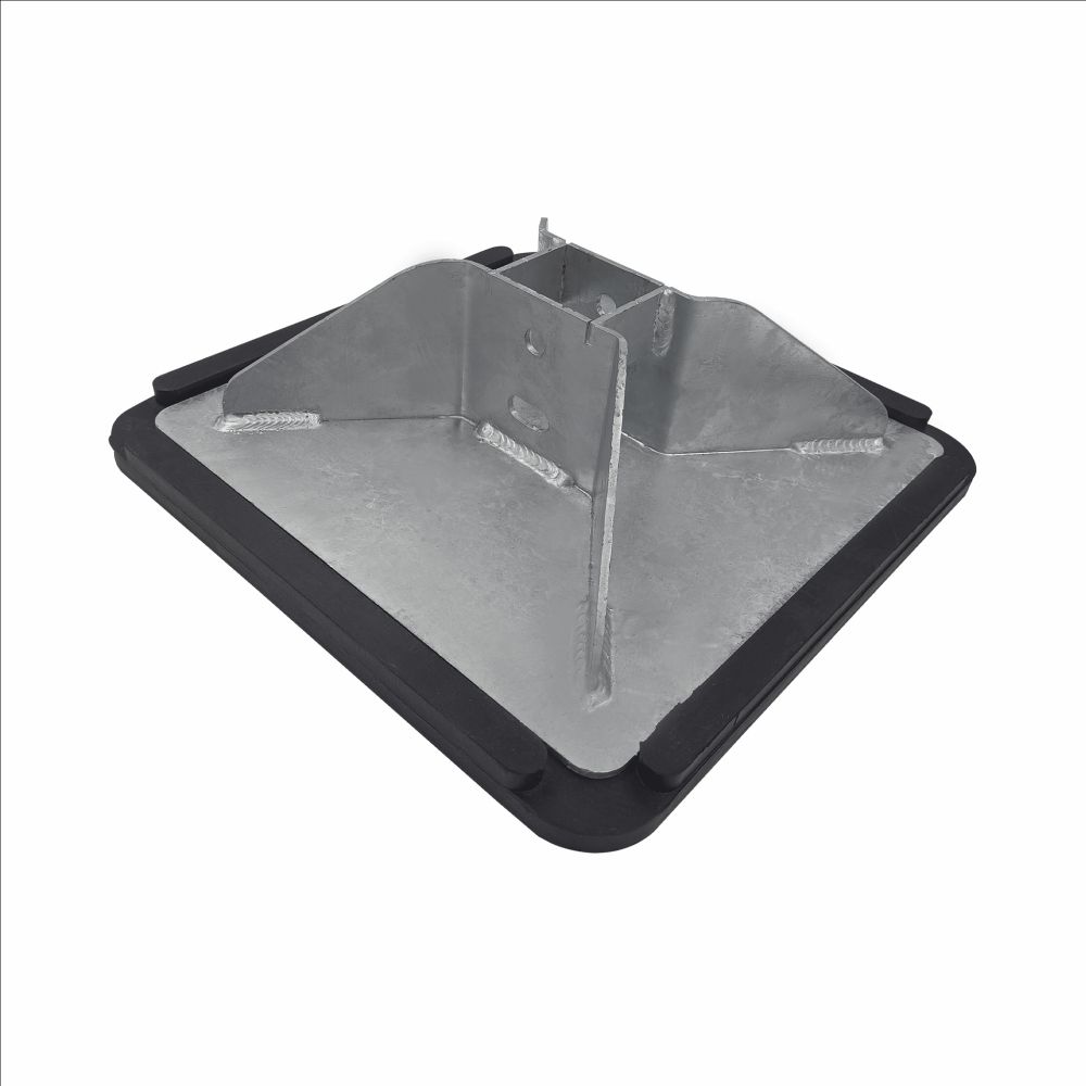 TECHNORAPTOR STEELFOOT – опора для установки оборудования на плоскую кровлю. Наличие коврика из бутадиен-метилстирольного каучука предотвращает повреждение кровли во время установки кровельной опоры. Ребра жесткости опоры TECHNORAPTOR STEELFOOT позволяют равномерно распределить нагрузку на всю площадь соприкосновения с поверхностью. Изделие изготовлено из стали и выдерживает нагрузку до 2550 кг. Компенсация уклона кровли  до 15°. Кровельная опора имеет антикоррозионное покрытие, полученное методом горячего цинкования: это обеспечивает защиту изделию сроком от 20 до 50 лет.