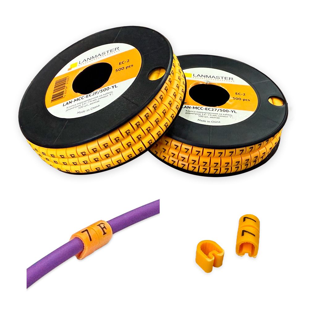 Клипса маркировочная на кабель диаметром 3.6–7.4 мм, символ "-", 500 шт., желтая LANMASTER LAN-MCC-EC2-/500-YL