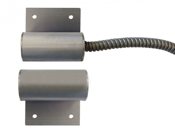 IP67. Контакты замкнуты на расстоянии 50 мм и разомкнуты на 70 мм. Вывод - кабель в металлорукаве длиной 1м. Антивандальный цилинтрический корпус из алюминиевого сплава 60х30 мм.