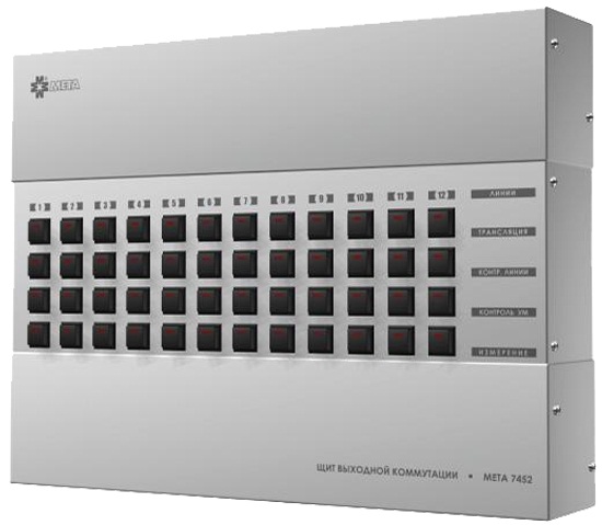 Щит выходной коммутации предназначен для работы в составе комплексов аппаратуры сетей проводного трансляционного вещания и оповещения. Использование щита выходной коммутации предусматривается совместно с блоком контроля линий МЕТА 9001.