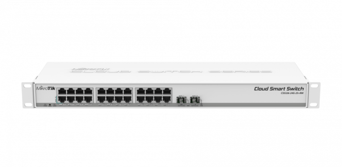 Управляемый коммутатор 2 уровня на базе SwOS имеет 24 гигабитных Ethernet-порта, 2 порта SFP+ и обеспечивает подключение на канальной скорости с несколькими новыми коммутационными функциями. SFP-слот поддерживает как модули 1.25 Гбит SFP, так и 10 Гбит SFP+.