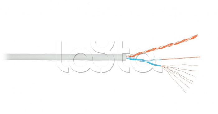 LAN U/UTP 2 пары, Кат.5 (Класс D), 100МГц, многожильный, BC (чистая медь), 24AWG (7х0,2мм), полимерный материал нг(А)-HF серый, 305м - гарантия: 1 год