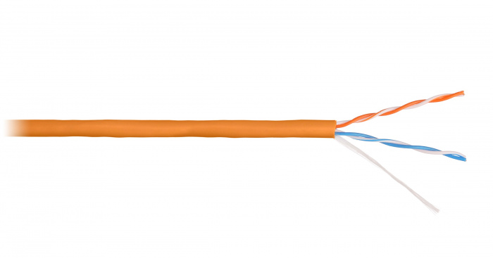 LAN U/UTP 2 пары, Кат.5 (Класс D), 100МГц, одножильный, BC (чистая медь), 24AWG (0,50мм), полимерный материал нг(А)-HF, оранжевый, 305м - гарантия: 1 год