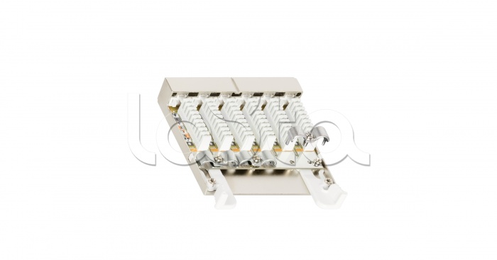 Кассеты NMC-CJ06SA2-1S-MT (Кат.6A) и NMC-CJ06SE2-1S-MT (Кат.6) выполнены в полностью экранированных стальных корпусах и представляют собой, своего рода, уменьшенные версии экранированных патч-панелей – емкостью на 6 портов RJ45/8P8C. Универсальные IDC контакты 110/KRONE расположены внутри кассет, на горизонтальной подложке. Разводка кабелей производится по двум стандартам: T568 А и B.