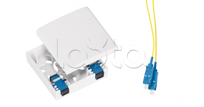 Оптическая розетка NIKOMAX (кросс), укомплектованная на 2 порта SC/APC, SM 9/125 OS2, пластиковая, белая, в комплекте: адаптеры, монтажные шнуры 1м, гильзы.