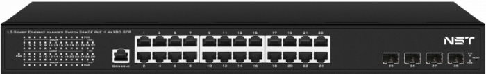 Управляемый L3 PoE коммутатор на 24xGE RJ-45 c PoE + 4х10G SFP+ порта NST NS-SW-24G4G10-PL