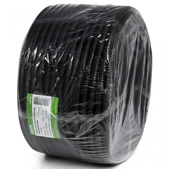 Труба гофрированная с зондом 25 мм.из ПНД, трудногорючая, безгалогенная FRHF гибкая со стальной протяжкой (черный) ПожТехКабель 713-003