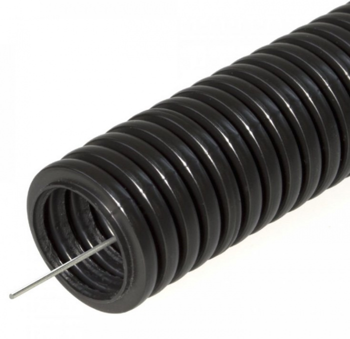 Труба гофрированная ПНД легкая 350 Н безгалогенная (HF) стойкая к ультрафиолету черная с/з д25 (10м/уп)... подробнее