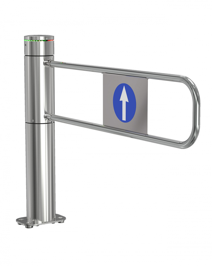 Опционально поставляется с вмонтированной (интегрированной) СКУД. Варианты исполнения калитки – окрашенная (цвет «серебряный антик») или нержавеющая сталь. В комплект поставки входит проводной ПДУ.