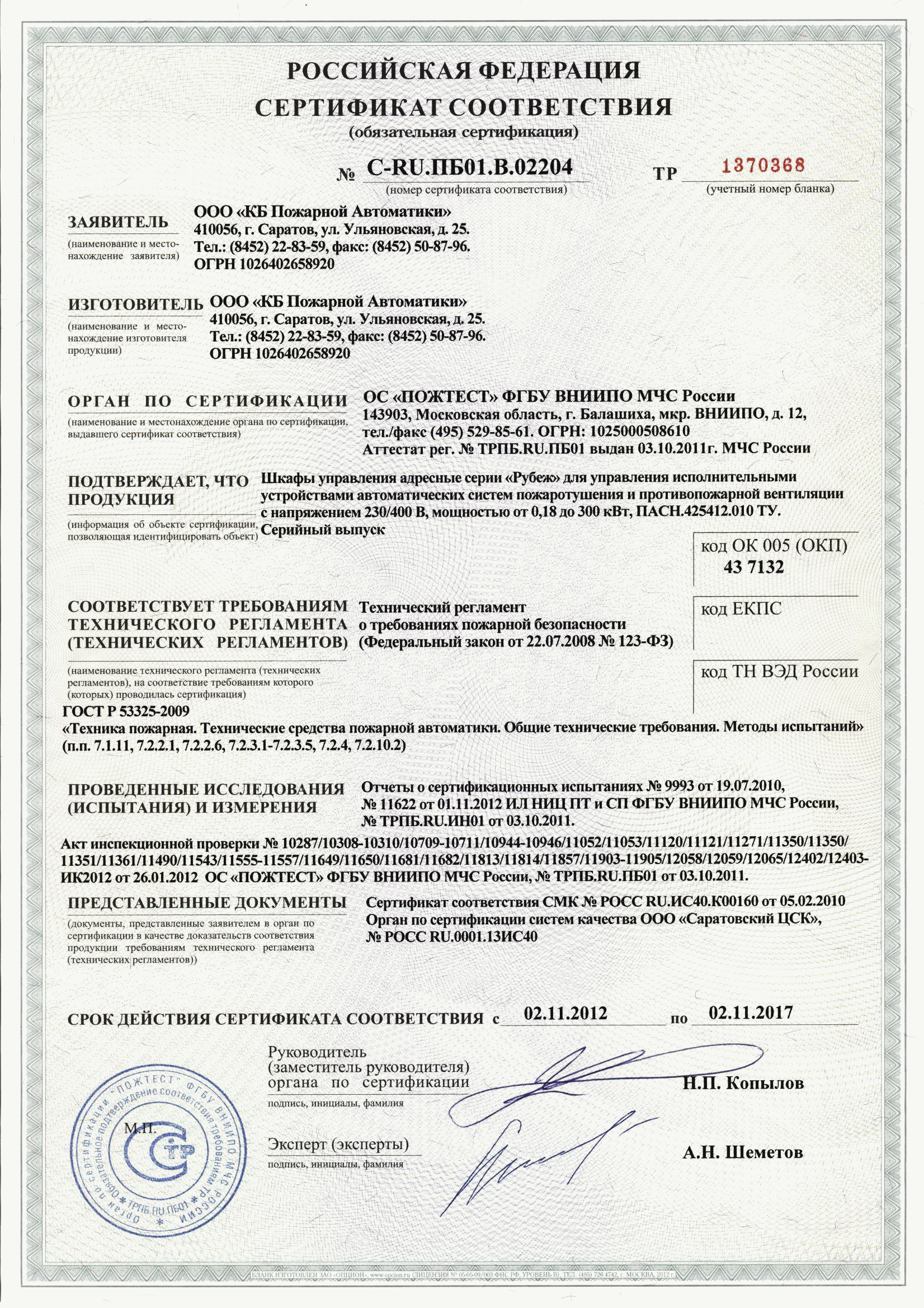 Сертификаты на Рубеж ШУВ-Т-1.5: