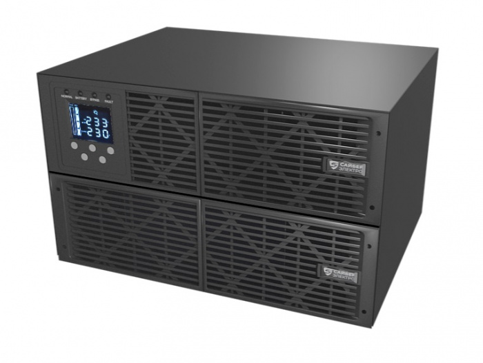 ИБП СайберЭлектро ЭКСПЕРТ-6000Р - ИБП Сайбер Электро ЭКСПЕРТ-6000Р Онлайн, Стойка/Напольный 6000ВА/5400Вт. USB/RS-232/SNMP Slot/EPO Клеммная колодка (1) (12В /7Ач. х 16) 3U+3U. Онлайн ИБП выполненный по технологии двойного преобразования энергии для обеспечения максимального уровня защиты ответственного стоечного оборудования в серверной комнате, центре обработки данных, для защиты АСУ ТП комплекса на производственном объекте и т.п. Модели совместимы с генератором. Источник бесперебойного питания Эксперт-6000Р выполнен по технологии двойного преобразования энергии (тип онлайн), что гарантирует максимальный уровень защиты для подключаемого к ИБП оборудования. Онлайн технология это выходной сигнал в виде чистой синусоиды, мгновенное или нулевое время переключения на работу от батарей при пропадании нагрузки в электросети, корректная работа с фазозависимым оборудованием.