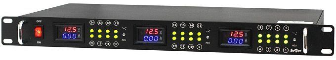 Блок бесперебойного питания 12 VDC/ 45 Aмпер, 24 канала, цифровой дисплей, корпус в стойку 1U, металл.
