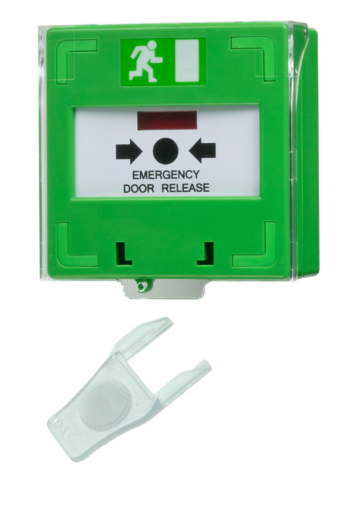 SOCA SCP-100 - Устройство разблокировки двери с восстанавливаемой вставкой и защитной крышкой. 3 контактные группы Н.О./Н.З.  Ток коммутации: 125В/3А. Габаритные размеры: 90x93x45мм. Цвет: зеленый.