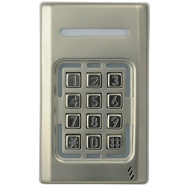 Кодовая панель со встроенным Em-marin считывателем. Обладает встроенной энергонезависимой памятью на 2000 карт, либо ввод 8 цифр кода карты (начиная справа). Поддерживает до 8 пользовательских программируемых кодов доступа. Четыре доступных режима открывания: по введенному коду, по карте EM-marine, по карте и коду, по карте или коду.