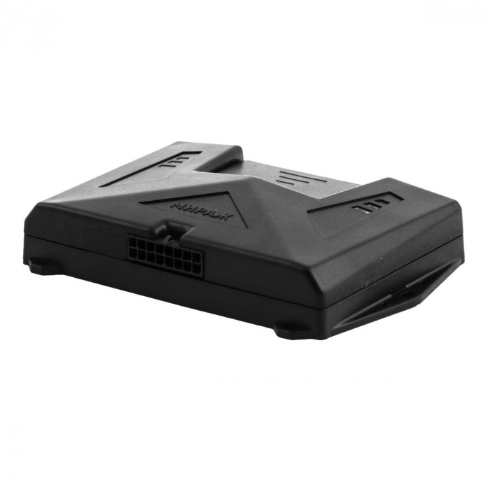 Питание терминала осуществляется от бортовой сети автомобиля с номинальным напряжением 12 или 24 В. При этом гарантированно сохраняется работоспособности терминала при кратковременной подаче напряжение до 100 В. Резервное питание обеспечивается аккумуляторной батареей. Терминал оснащен оптическим датчиком вскрытия корпуса для защиты от несанкционированного доступа.