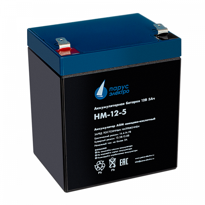 Парус Электро HM-12-5 - HM стандартная серия Напряжение/Емкость 12/5, 90x70x101, Вес АКБ 1,8, Срок службы 6 подробнее