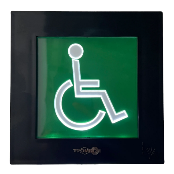 Информационное светозвуковое табло «Тромбон СОРС-ИСТ» исполнение К устанавливается на входе в помещения и зоны безопасности, специально оборудованные для маломобильных групп населения (МГН). Табло предназначено для подтверждения сигнала вызова из таких помещений и привлечения внимания дежурного персонала. ИСТ подключается в систему через Абонентское вызывное устройство.
