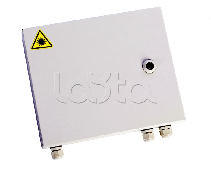 Корпус выполнен из металла, дверь имеет пенорезиновый уплотнитель, место для размещения запаса кабеля, фиксируется точечным замком. Бокс обеспечивает укладку оптического волокна радиусом не менее 30мм. В корпусе уставлена сплайс-кассета. Кабельные вводы расположены в нижней части бокса имеют цанговые зажимы. Бокс стандартно комплектуется сменными вставками для установки адаптеров - SC, ST, FC, LC, стяжками, маркерами кабеля, таблицей адресов кроссировки волокон, гильзами КДЗС и комплектом для крепления к стене. Покрытие порошково-полимерное - RAL 7035 (серый)