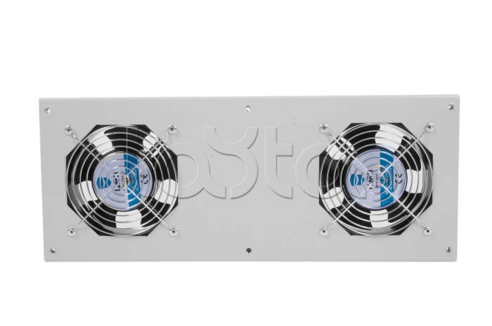 Модуль вентиляторный потолочный (170x425), 2 вентилятора с терморегулятором. Порог включения задается в пределах от О до +60 С, порог выключения - понижение температуры на 7 С от заданной. Для подключения питания подходят шнуры с разъемом IEC 60320 C13.