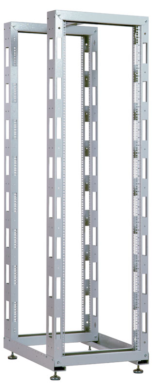 Универсальные стойки 19" имеют полностью разборную двухрамную конструкцию, каркас повышенной жесткости скреплен болтами с внутренними шестигранниками. Вертикальные направляющие имеют юнитовую маркировку. Для удобства монтажа и коммутации оборудования предусмотрены развитая перфорация, широкий спектр аксессуаров и система заземления. Двухрамная универсальная стойка 19" имеет регулировку полезной глубины – 750/620/580/450. При организации крупных коммутационных узлов возможно крепление стоек между собой через вертикальный кабельный органайзер. Удобство установки обеспечивают массивные опорные кронштейны и регулируемые винтовые опоры (ножки), компенсирующие неровности пола.