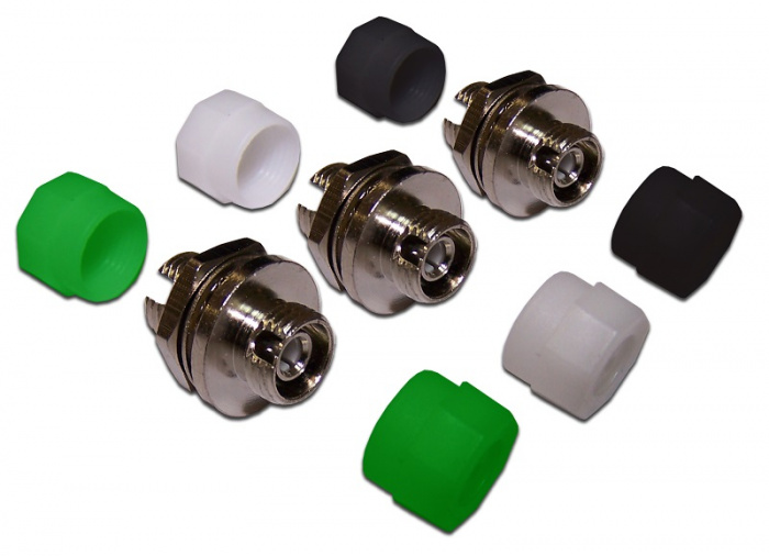 Производятся адаптеры для многомодовых (черные колпачки) и одномодовых (белые колпачки) коннекторов. Кроме того производятся адаптеры для одномодовых коннекторов с угловой шлифовкой APC (зеленый корпус).