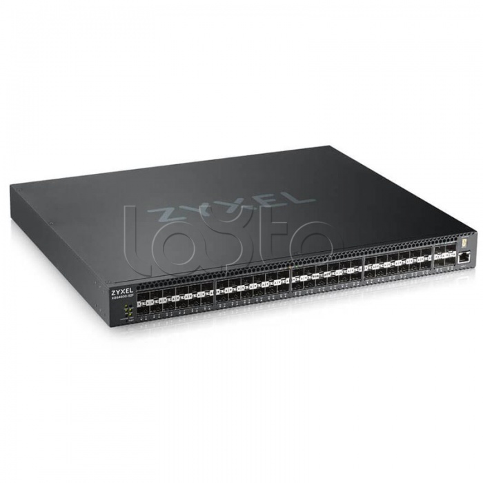 Управляемый коммутатор ZyXEL XGS4600-52F уровня Layer 3 со скоростью коммутации 176Гб/с, таблица MAC-адресов составляет 32K, оснащен 48 слотами SFP 1 Гб/с и 4 слотами SFP+ 10 Гб/с.